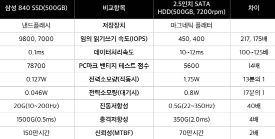 SSD는 HDD보다 파일에 상관없이 이 과정을 더 빠르게 처리하며 노트북 부팅 속도도 더 빨라진다. 기본적으로 노트북의 특성상 SSD가 더 적합한 스토리지이기도 하다. SSD는 기존 회전식 HDD와 달리 움직이는 부품이 없다. 노트북을 떨어뜨리거나 큰 충격을 주는 것은 피해야겠지만, HDD는 이런 위험에 특히 취약하다. 반면 SSD는 이 점에서 내구성이 더 뛰어나다.