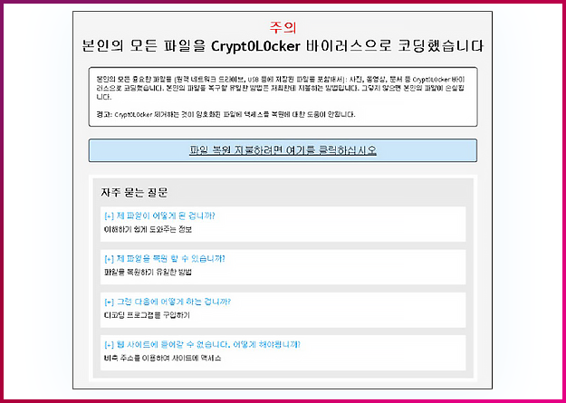 이때는 증상을 자세히 살펴보아야 하는데, 램섬웨어 및 바이러스에 걸렸을 때 PC의 반응에 대하 소개한다.