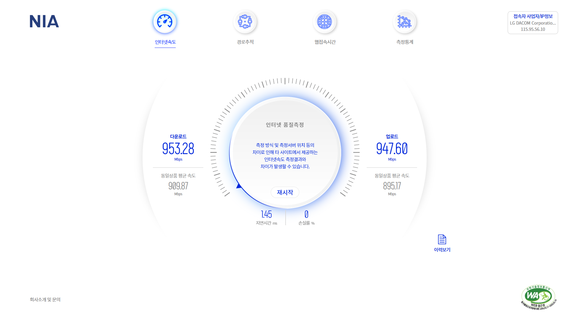특정 웹 사이트가 응답하지 않거나 느리게 응답하는 것이 문제인 경우 한인터넷진흥원에서 제공하는 인터넷 품질 측정 서비스를 사용하여 테스트하면 도움이 될 것이다.