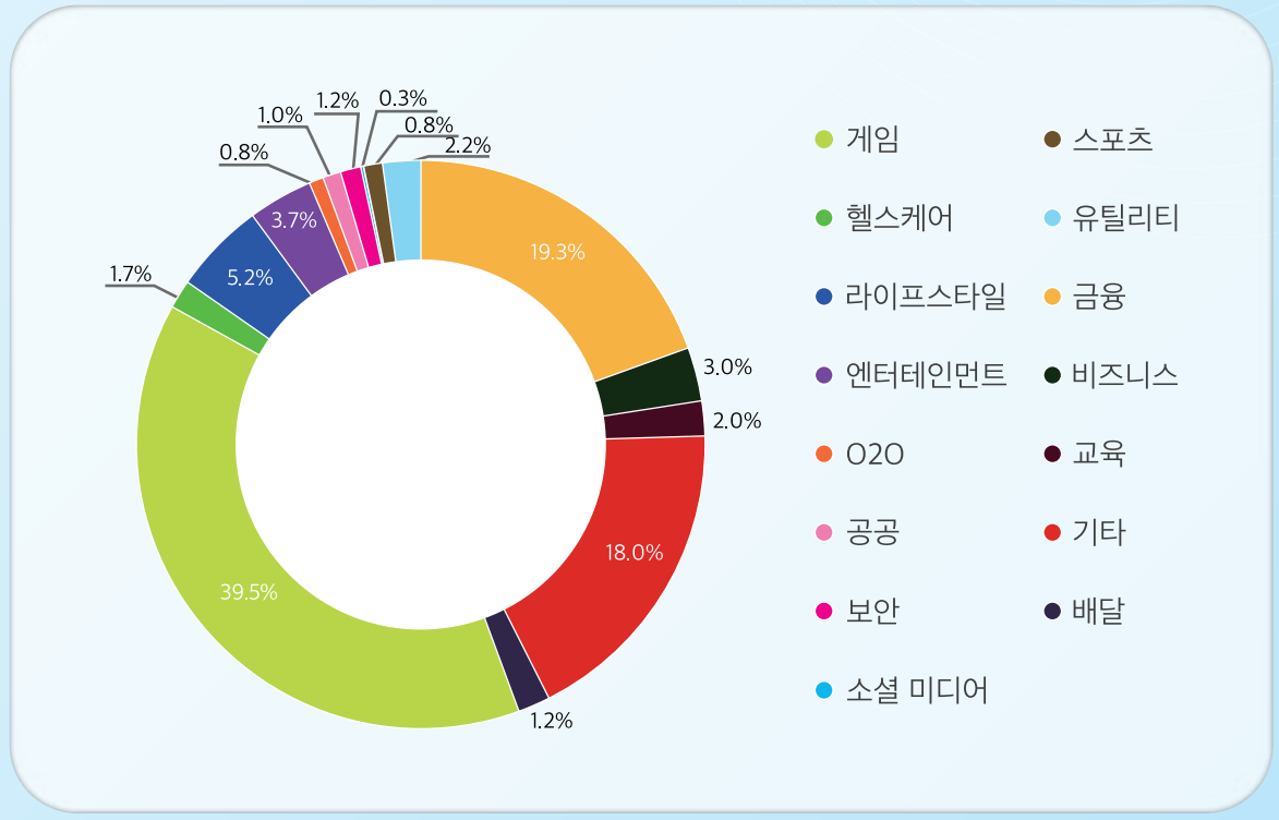 모바일 앱의 비중은 게임이 40%로 가장 많았으며, 은행, 가상화폐 거래소 등이 19%로 가장 많았다.
