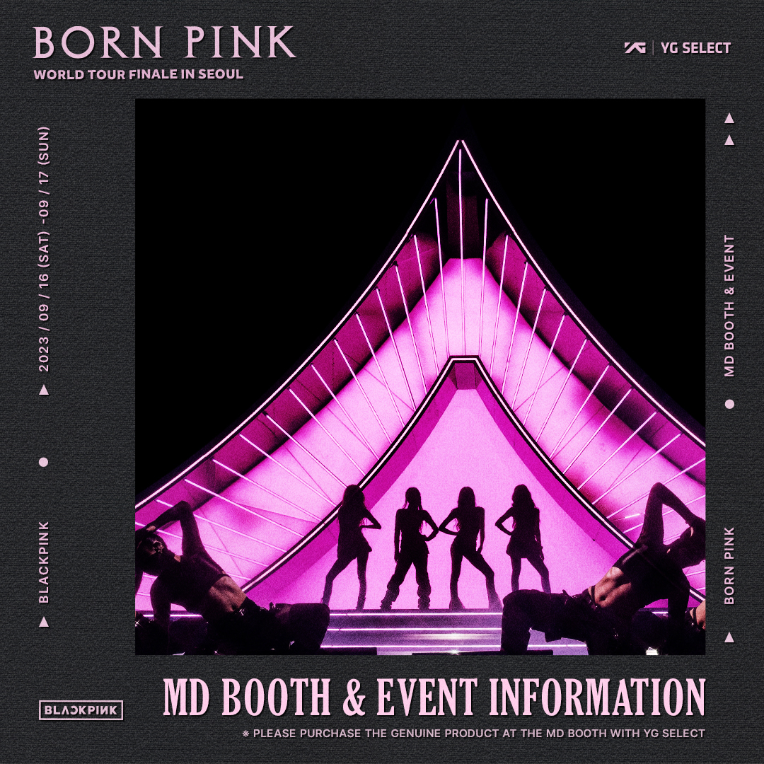 YG 는 13일, K팝 걸그룹 블랙핑크의 월드투어 ‘BORN PINK’의 서울 피날레 콘서트에 대한 멀티플 라인업(MD)을 공개했다. 이번 라인업은 총 27종으로 구성되어 있으며, 티셔츠, 후드티, 버킷모자, 블랙핑크 캐릭터 MD, 응원봉 등이 포함되어 있다.